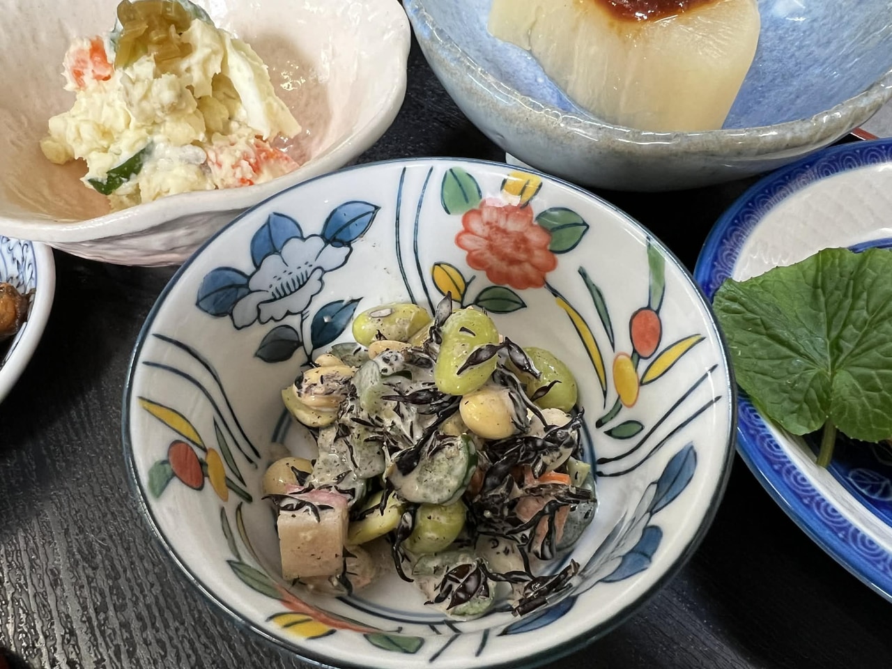 •Hijiki seaweed and bean salad (with Jerusalem artichoke)