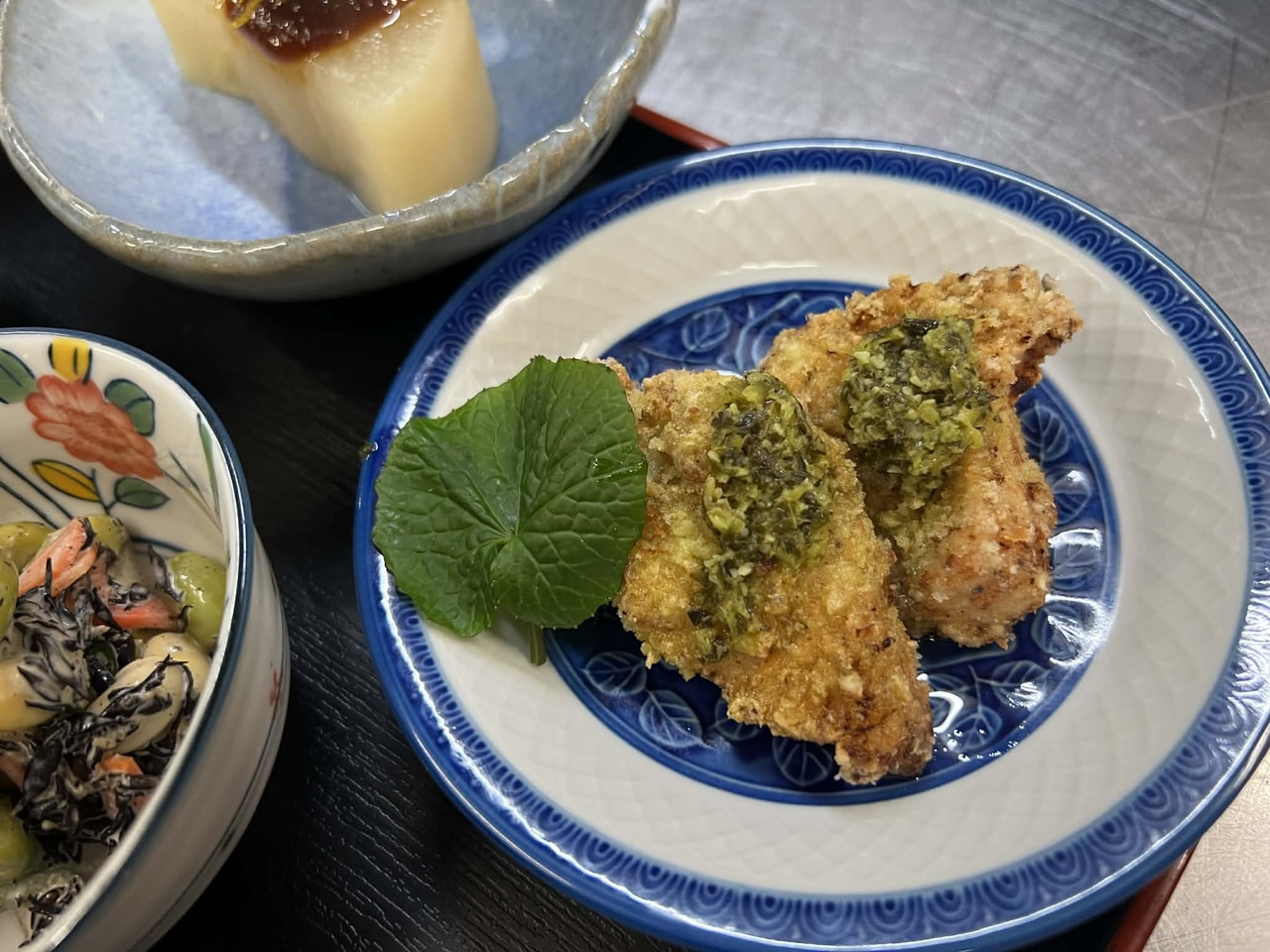 ・塩麹とりムネの唐揚げ(山辺わさびソースがけ)