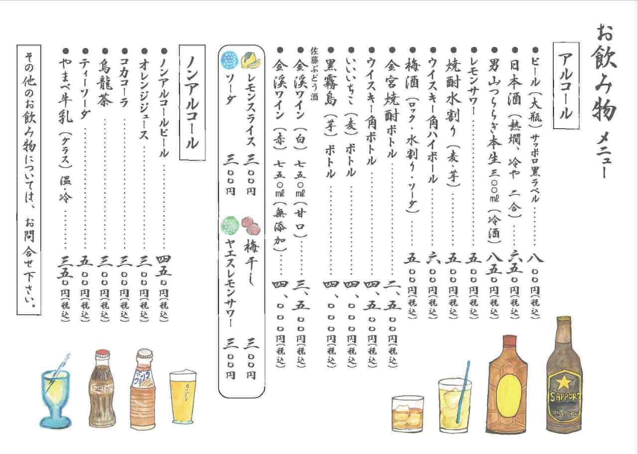 ヤマキチ夜の部メニューのご紹介です。蔵座敷貸し切りでのご提供になります。ご予算などご相談ください。