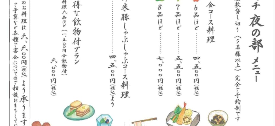 ヤマキチ夜の部メニューのご紹介です。蔵座敷貸し切りでのご提供になります。ご予算などご相談ください。 ヤマ … 続きを読む 夜の部(ご宴会)メニュー